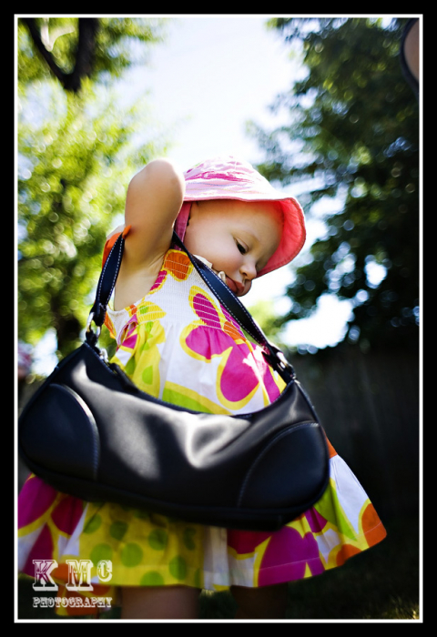 Aww man, that last one is the BEST! I love the color in all of these. What little cuties!! And I love the one of Josie with the purse, too cute!